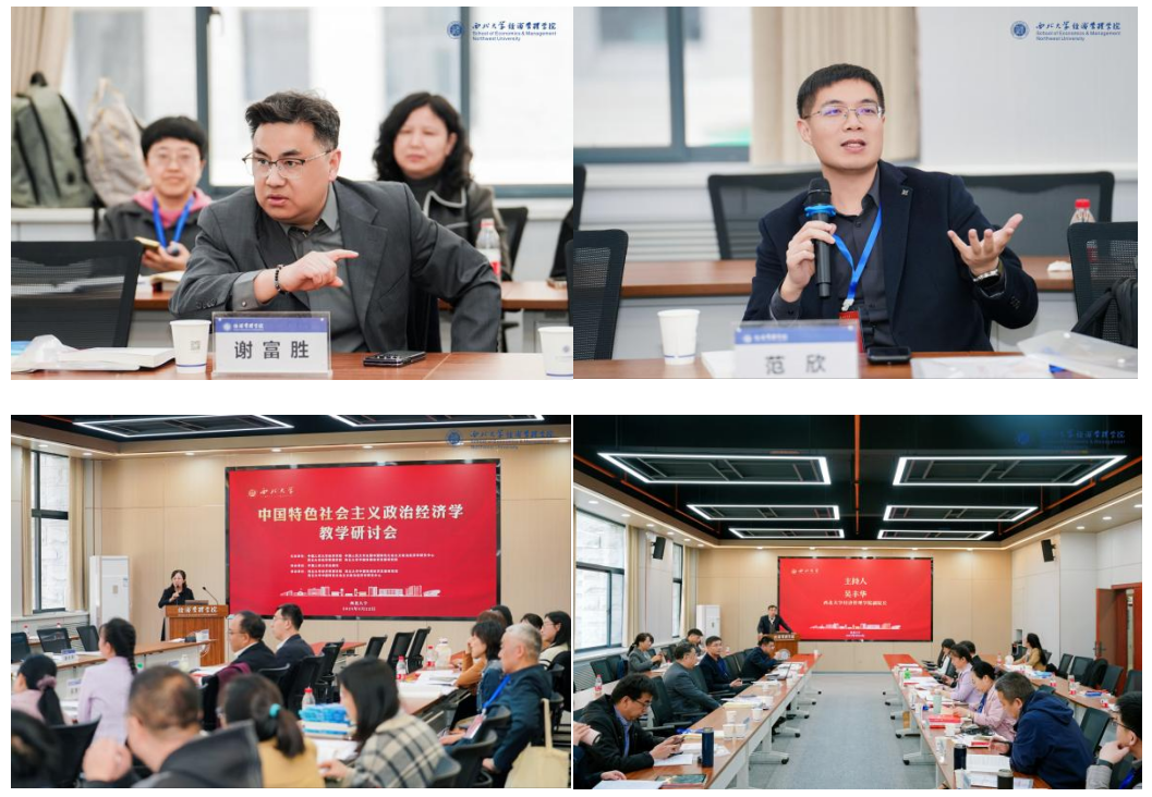 课程建设交流发言环节由中国人民大学经济学院副院长范欣主持,与会专家围绕《中国特色社会主义政治经济学》课程建设展开深入研讨。beat365英国官方网站院长马莉莉做了题为《创新推进<中国特色社会主义政治经济学>课程建设》的发言,重点阐述了beat365英国官方网站“中国特色社会主义政治经济学”课程建设的历史传承,课程创新建设的整体思路、具体路径和支撑体系。兰州大学经济学院副院长潘永昕做了题为《数智时代经济学人才培养的转型》的发言,探讨了数智时代人才培养转型与课程建设的关键问题,以及兰州大学政治经济学相关课程建设中存在的问题与思考。兰州财经大学经济学院院长刘建国做了题为《<中国特色社会主义政治经济学>教学与人才培养方面的一些思考》的发言,系统分析了教材特色优势及教学和人才培养的改进建议。新疆财经大学经济学院书记敬莉做了题为《<中国特色社会主义政治经济学>课程建设汇报》的发言,分享了面向全校统开课程的情况和课程建设经验。西安财经大学经济学院院长宋敏做了题为《<政治经济学>课程建设、教材建设及专业人才培养》的发言,就课程建设、教材开发与人才培养新模式进行分享。陕西师范大学国际商学院副院长尹海员做了题为《陕西师范大学商学院经济学专业与课程建设》的发言,主要介绍学院经济学课程体系建设情况。内蒙古财经大学经济学院副院长陈玉和做了题为《<中国特色社会主义政治经济学>课程建设与思考》的发言,交流了课程建设实践。陕西科技大学beat365英国官方网站院长助理邢战雷针对教材使用和教学实践中的困惑提出见解。