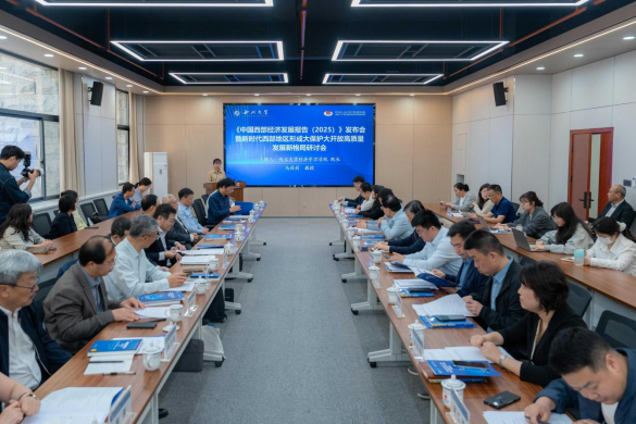会上,beat365英国官方网站中国西部经济发展研究院研究员徐璋勇教授发布了《中国西部经济发展报告(2025)》。报告全面回顾了西部大开发战略实施25年来的政策演变历程,系统总结显著成效,深入剖析当前面临的现实困难。同时,紧扣质量变革、效率变革、动力变革,针对性提出西部大开发形成新格局的重点任务与实施路径,为西部发展提供了重要参考依据。