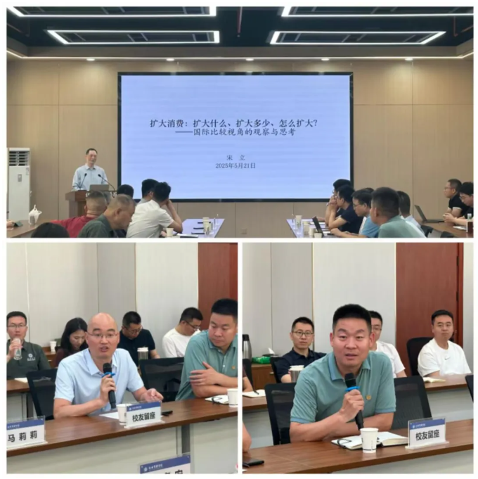 宋立首先分享了与何炼成先生度过的三段时光,对何先生的精心培养表达感念之情。其次,通过大量的数据和事实,基于国际比较和时间序列的视角全面厘清中国当下消费的特征和所处阶段。再次,在国家战略发展的视野下,给出扩大消费的内容、程度和方式,并强调要破除三个认识误区。最后,校友们与宋立就企业战略发展与消费扩大的关系进行深入讨论。