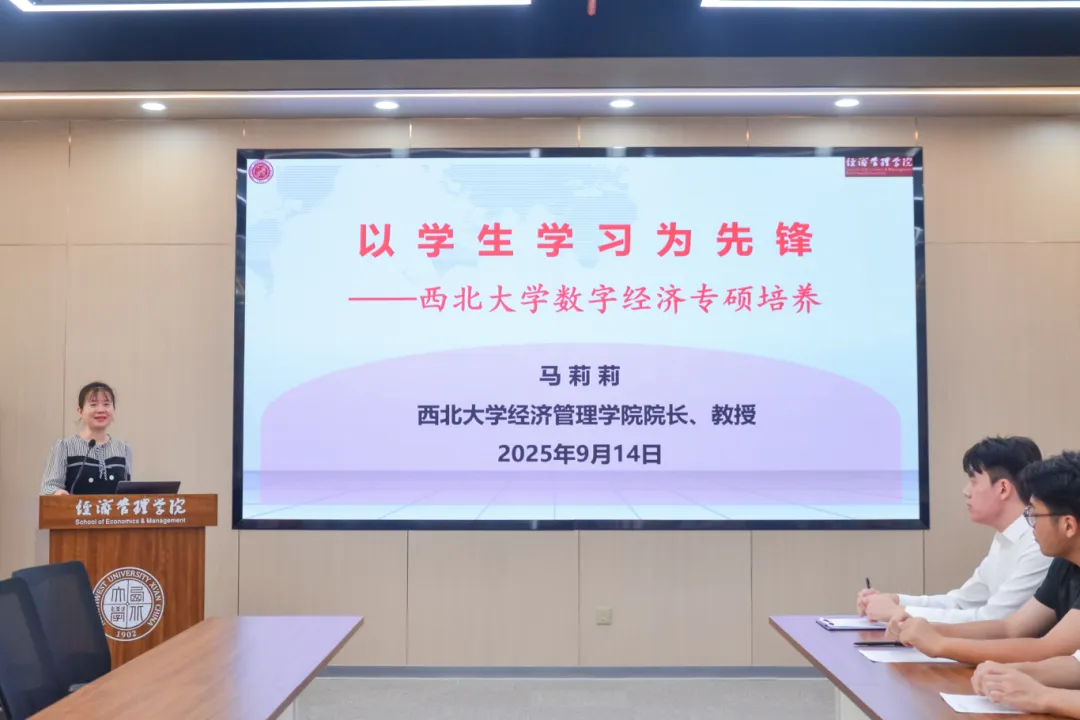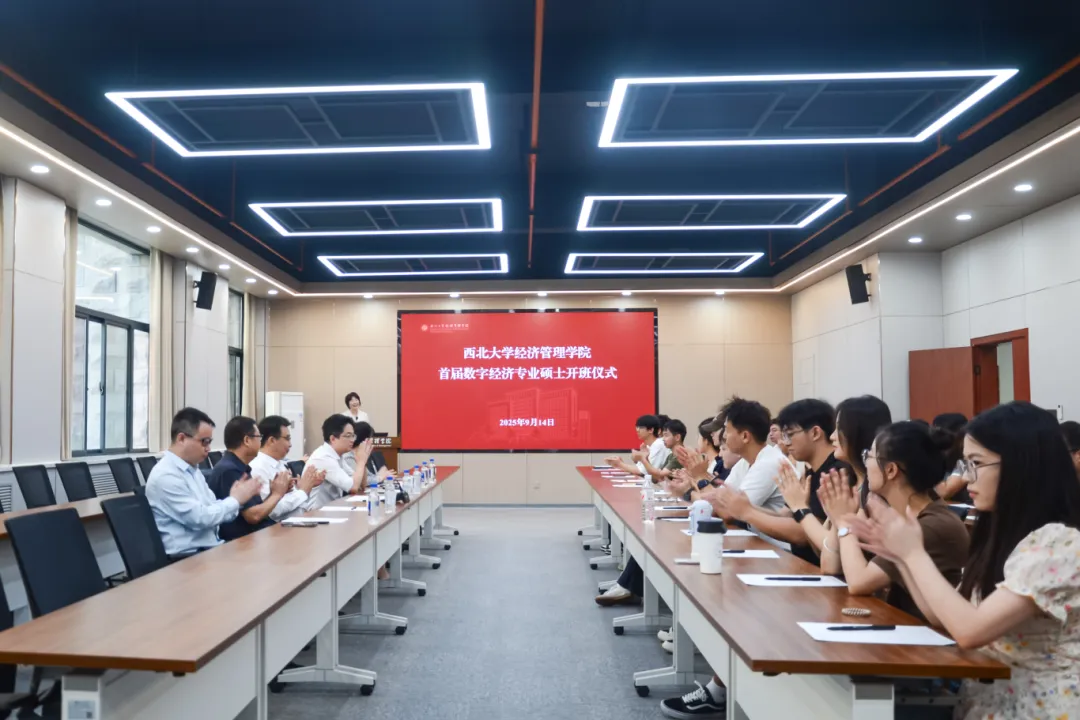 9月14日上午,beat365英国官方网站首届数字经济专业硕士开班仪式在长安校区宏观经济大楼124会议室举行。校党委常委、副校长田明纲出席仪式,陕西丝路数据交易中心总经理史奎,学院党委书记史波、院长马莉莉、副院长岳利萍、数据科学与智能管理系主任高鹏、研究生新生辅导员及2025级数字经济专业硕士全体新生共同参加仪式,仪式由学院副院长岳利萍主持。