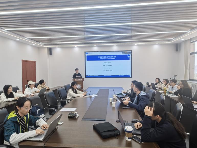 随后,2024级硕士生杨京源围绕《环境规制能否成为就业稳定器?——政策信号传导与劳动力市场响应》进行分享。他从过往文献缺陷与本文贡献切入,指出当前研究在政策信号传导机制分析上的不足,进而详细阐述政策信号的传导路径设计,基于Word2Vec扩展词典构建分析框架的过程,最终呈现环境规制对企业员工总数影响的核心研究结论,为理解环境政策与就业市场的关联提供了新视角。