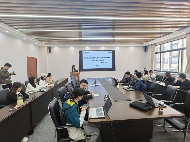 报告环节中,焦梦云博士生以《博物馆文化设施可达性与公平性的空间格局演变及耦合协调关系——以西安市为例》为题,从引言、博物馆可达性与公平性耦合协调机理、研究区域与方法数据、研究结果分析和结论与讨论五个维度系统阐述研究内容。该研究选取全市174个乡镇为案例区域,创新性引入“供需关系约束的可达性”视角,精准刻画资源有限、需求分布不均现实场景下的文化服务获取水平,进而从旅居共享维度探究博物馆设施可达性与公平性的耦合协调关系。