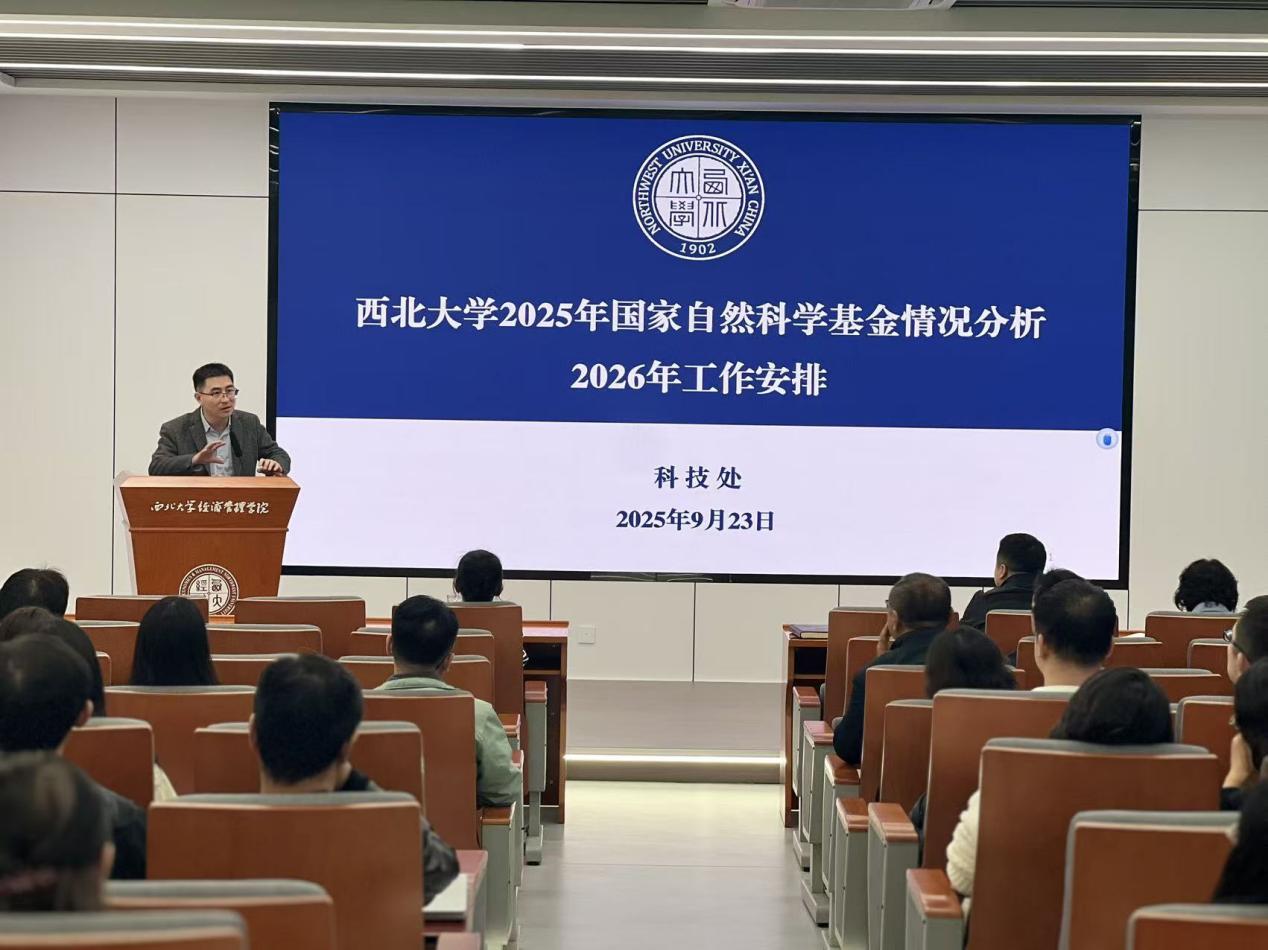 随后,学校科技处副处长赵新正从国家自然科学基金的角度,围绕学校2025年度总体申报概况、基本特点和存在问题等做了主题报告。分享了提高申报质量的有效策略,并对2026年的申报组织工作提出了学校的整体规划与时间节点要求。