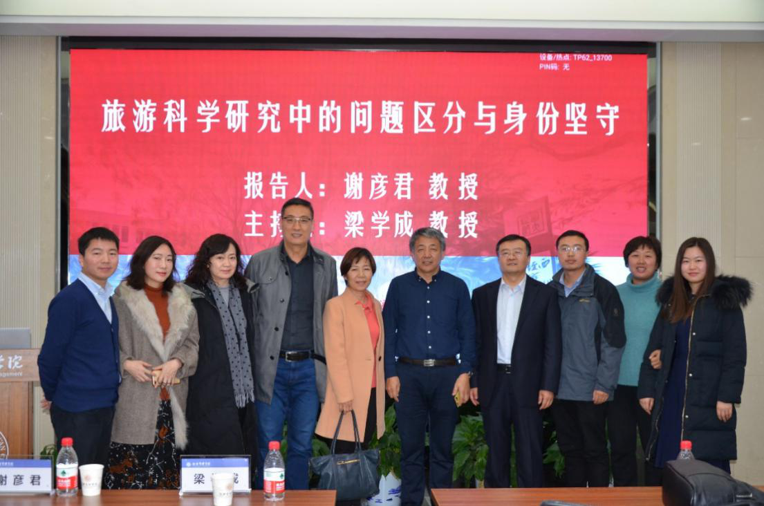 12月27日下午,国内知名旅游专家海南大学旅游学院谢彦君教授受邀来beat365官网进行学术交流,活动由旅游管理系主任梁学成教授主持,旅游管理系部分师生共50余人参加了此次学术活动。谢彦君教授以“旅游科学研究中的问题转换与身份坚守”为题,从问题区分、知识观、身份坚守等方面,对旅游科学研究中的相关问题进行深入浅出系统化阐释与分析。谢教授的讲解融会贯通了哲学、经济学、社会学和旅游学等多学科知识,学理性强、启发性大,给在场师生带来了一场精彩的学术盛宴。最后,谢教授还与师生针对网红旅游、全域旅游及旅游研究新范畴等热点问题展开了互动交流和探讨。此次学术活动,对于进一步提高beat365官网旅游管理学科的科研水平必将产生积极影响。