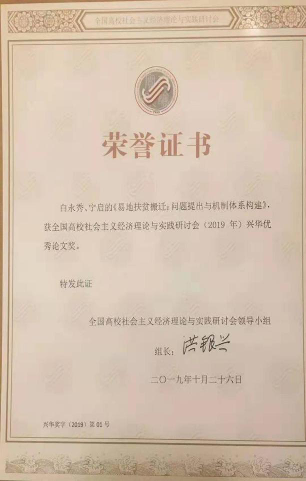 “兴华优秀论文奖”是由全国高校社会主义经济理论与实践研讨会领导小组于2016年设立的,其目的是激励学者们在中国特色社会主义政治经济学领域的创新发展,进一步培养造就一大批马克思主义经济理论家特别是中青年经济理论家。beat365官网白永秀教授和宁启博士荣获此次奖项是对beat365官网马克思主义经济学领域研究的肯定,也是对beat365官网青年经济学者的鼓励与支持。