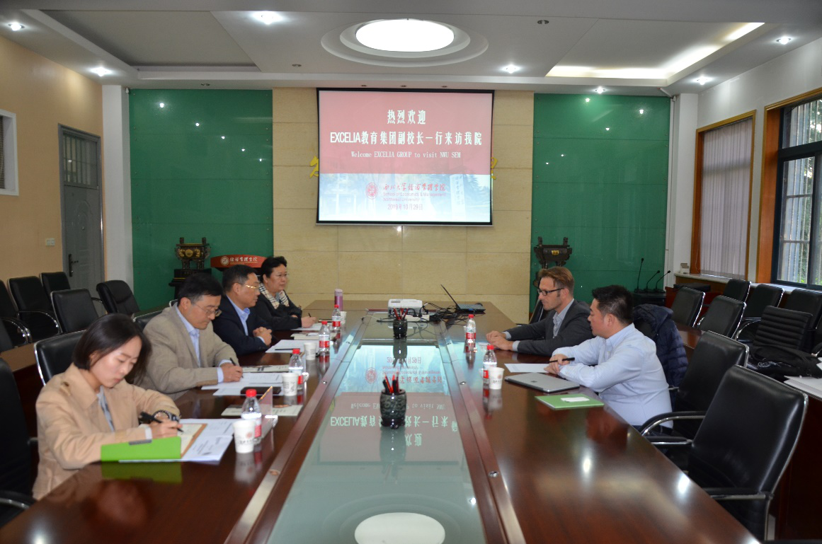 10月29日下午,法国EXCELIA教育集团主管学校发展与战略合作的副校长Gambini Maxime先生和国际项目专员周春斌先生一行来访beat365官网,学院党委书记、常务副院长杜勇、旅游管理系系主任梁学成教授、院长助理康蓉副教授及学院外事办公室秘书毛丹阳老师参加座谈会。