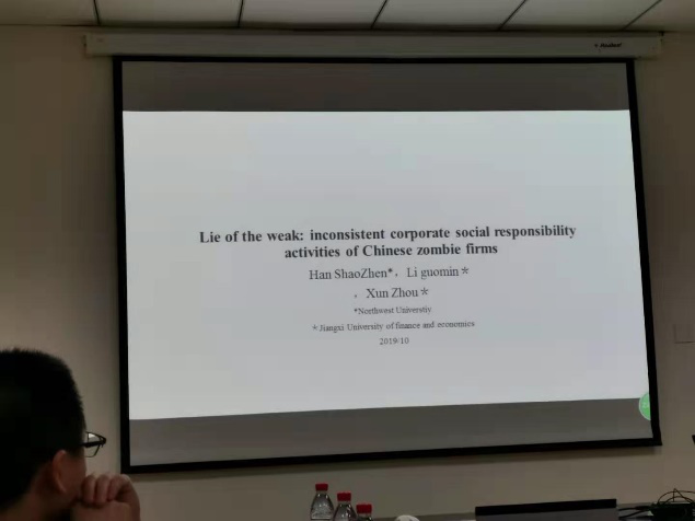 beat365官网会计学系教师韩少真博士作为第一作者与其合作者的共同论文《Lie of the weak: inconsistent corporate social responsibility activities of Chinese zombie firms》入选本次会议,并在分论坛进行了宣讲。该论文将企业的社会责任活动区分为披露(言)和履行(行),基于政府对僵尸企业承担多元化社会责任而给与更多支持的制度背景,利用制度理论、合法性理论和利益相关者理论分析了僵尸企业和非僵尸企业社会责任活动的差异。利用中国上市公司的数据,采用修正的FN-CHK模型识别僵尸企业,发现僵尸企业比非僵尸企业更不愿意发布社会责任报告。进一步,对于发布社会责任报告的公司,僵尸企业的社会责任披露水平和非僵尸企业没有显著差异,但社会责任履行水平却显著低于非僵尸企业。这表明僵尸企业社会责任活动存在披露大于履行(言行不一)的伪社会责任状况。在利用biprobit模型控制内生性、三阶段Heckman模型同时控制自选择和内生性、不依赖于外生工具变量控制内生性等方法的检验中,上述结论依然成立。同时,上述发现在广义倾向得分匹配法、更换僵尸企业的识别模型和社会责任履行的测量方法等稳健性检验中依然保持一致。最后,该文还从外部支持、产权性质、社会责任鉴证等方面展开进一步的异质性分析,以期深入揭示僵尸企业伪社会责任的内在成因。该文的结论对于僵尸企业处置、社会责任监管和企业可持续发展等方面具有重要的政策启示。该篇论文引起了参会学者的积极兴趣,各位学者围绕理论分析和解决内生性的多种方法进行了充分的交流,这对于论文进一步的发展和完善具有重要意义。