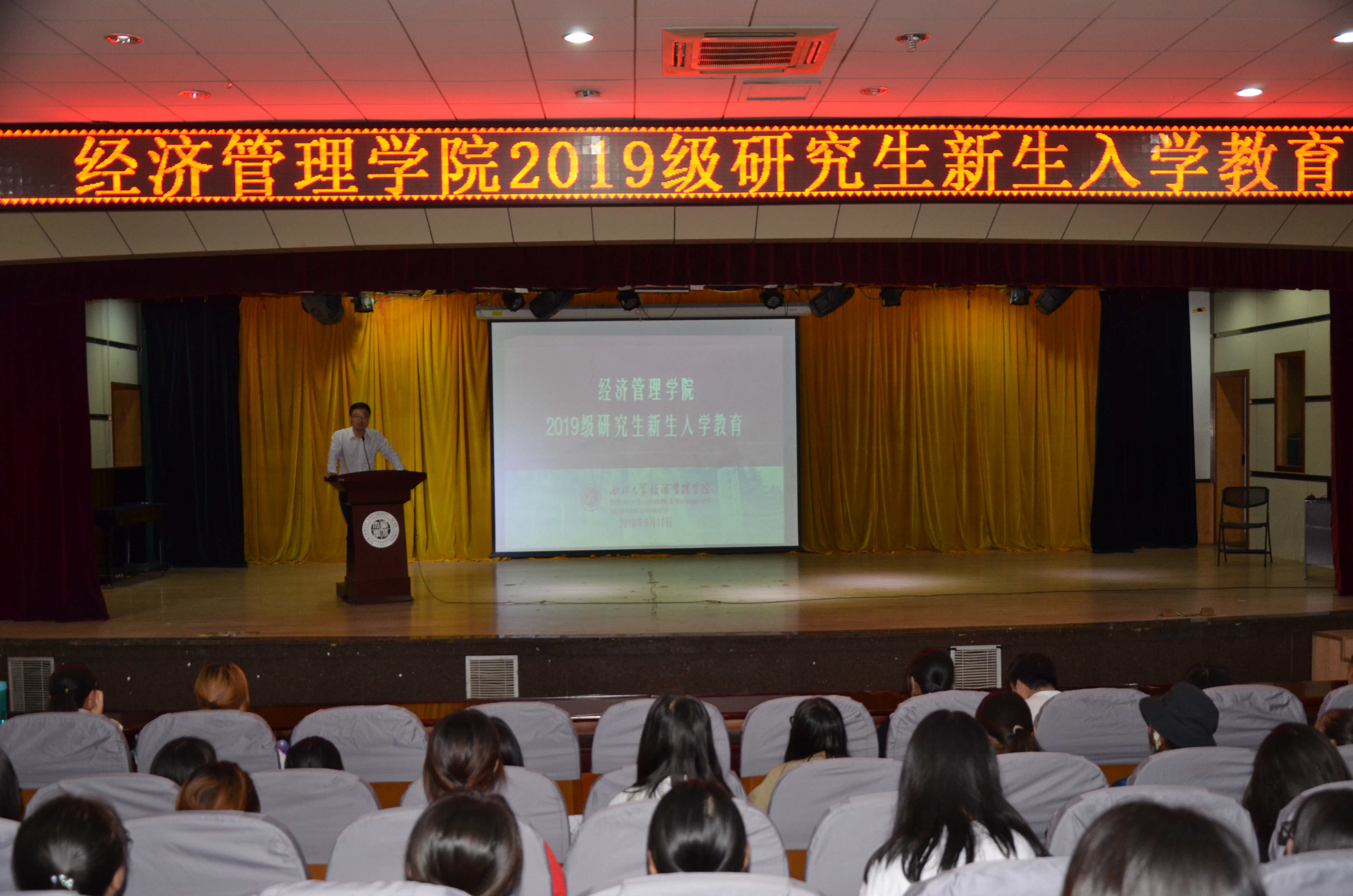 2019年9月11日下午,beat365英国官方网站2019级研究生新生入学教育在长安校区多功能报告厅举行。beat365英国官方网站副院长马莉莉教授、beat365英国官方网站党委副书记赵金哲老师,2019年新任研究生导师及2019级全体研究生参加活动。