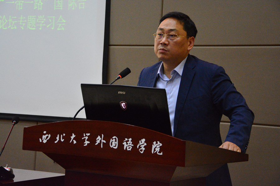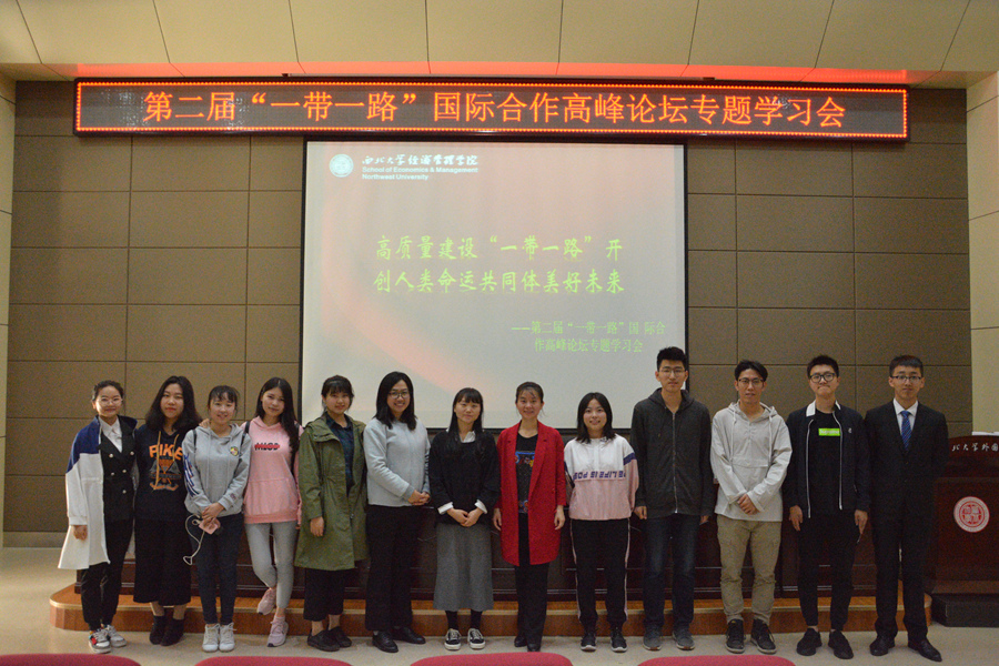 2019年4月29日,由beat365英国官方网站团委、世界经济与贸易系、陕西省丝绸之路经济带建设协同创新中心联合主办的“高质量建设‘一带一路’开创人类命运共同体美好未来——第二届‘一带一路’国际合作高峰论坛专题学习会”在外语学院第二课堂顺利举行,beat365英国官方网站党委负责人、副院长、副书记,世界经济与贸易系部分教师,以及百余名学生代表共同参加本次专题学习会。