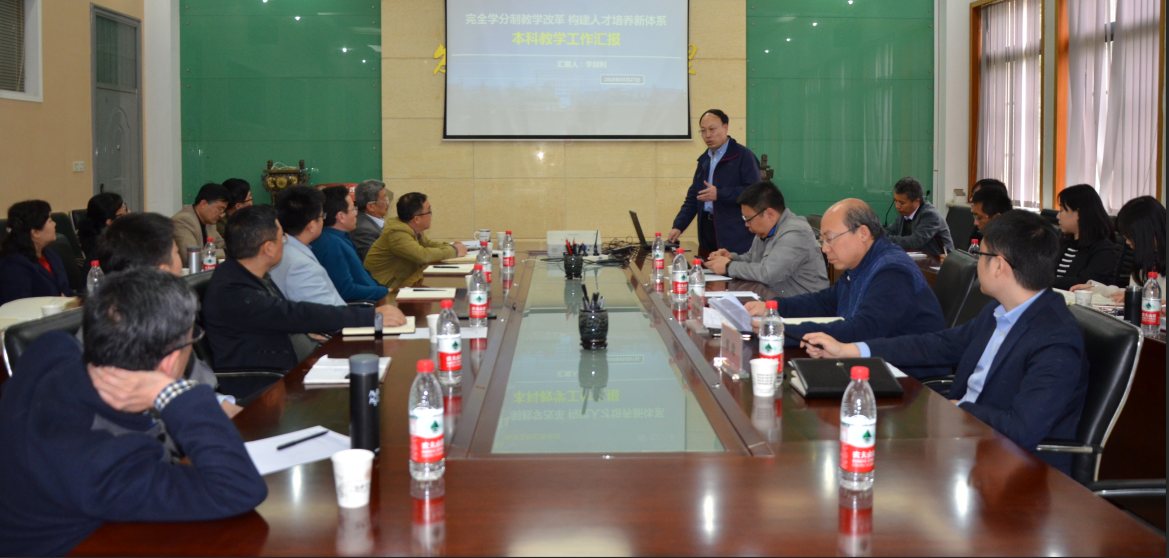 吴振磊院长代表学院对教务处莅临学院指导工作表示热烈欢迎和衷心感谢。李剑利处长就学校完全学分制改革做了专题报告。他指出,实行完全学分制是我校贯彻落实全国教育大会和新时代全国高等学校本科教育工作会议精神的重要举措。我校以完全学分制改革为统领,以“一流本科”建设为目标,深化教育教学改革,聚焦内涵发展,着力构建新时代本科人才培养新体系。与会教师就完全学分制制度完善、挂牌授课、在线课程建设、实验实践教学、课堂教学质量提升等问题提出提升本科教育质量的意见和建议。