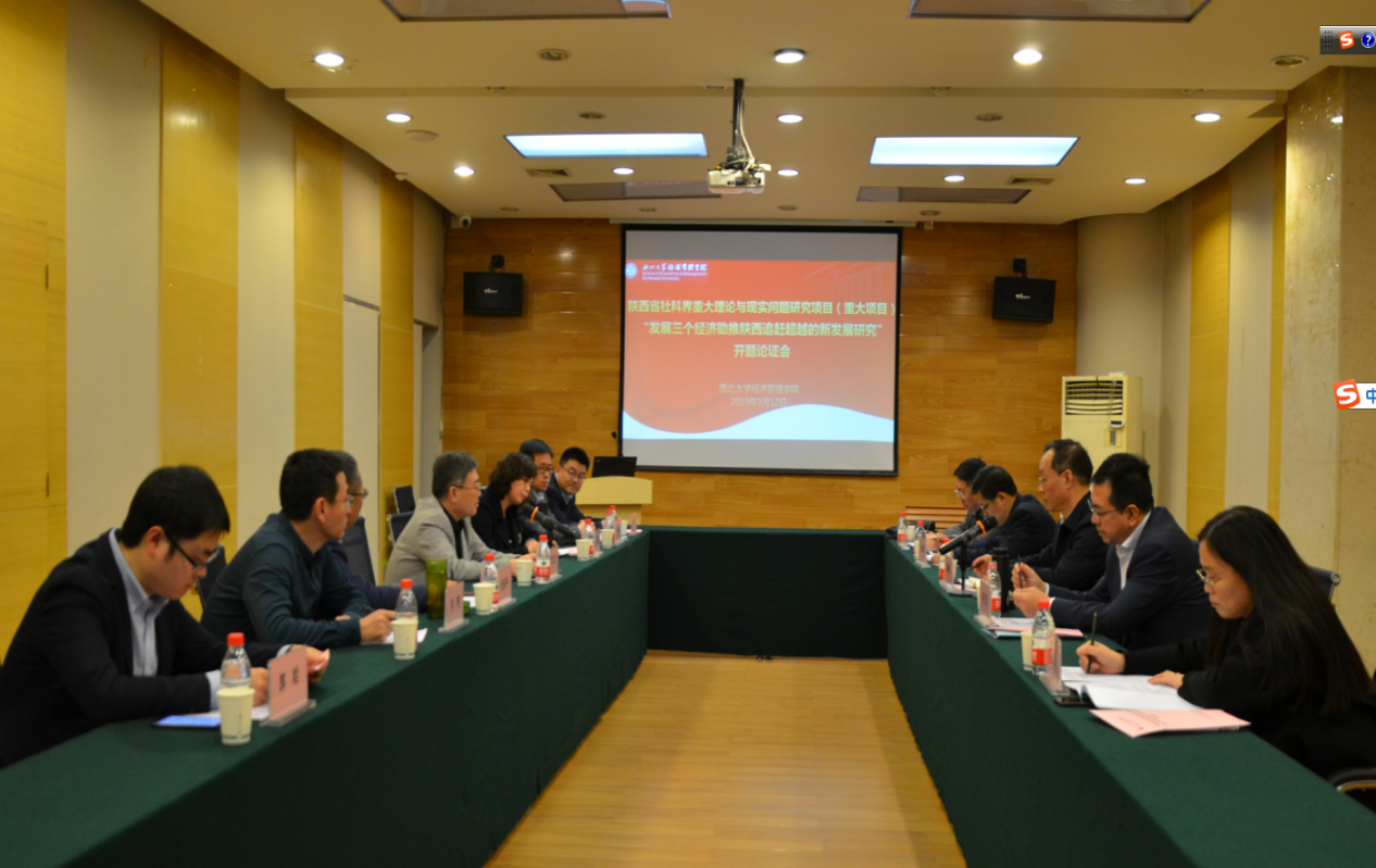 2019年3月12日下午,由beat365英国官方网站校长郭立宏教授承担的陕西省社科界重大理论与现实问题研究项目《发展“三个经济”助推陕西追赶超越的新发展研究》开题论证会在我校太白校区召开。省社科联党组书记、常务副主席郭建树、省商务厅副厅长李生荣、省发改委规划处处长李雄斌、省社科院经济研究所所长裴成荣研究员、西安交通大学经济与金融学院冯宗宪教授、省社科院科普部部长李瑛应邀出席。课题组成员beat365英国官方网站研究生院院长任保平教授、beat365英国官方网站教务处副处长郭晗副教授、beat365英国官方网站副院长李辉副教授,以及beat365英国官方网站社科处副处长李丰庆出席了会议。会议由beat365英国官方网站院长吴振磊教授主持。