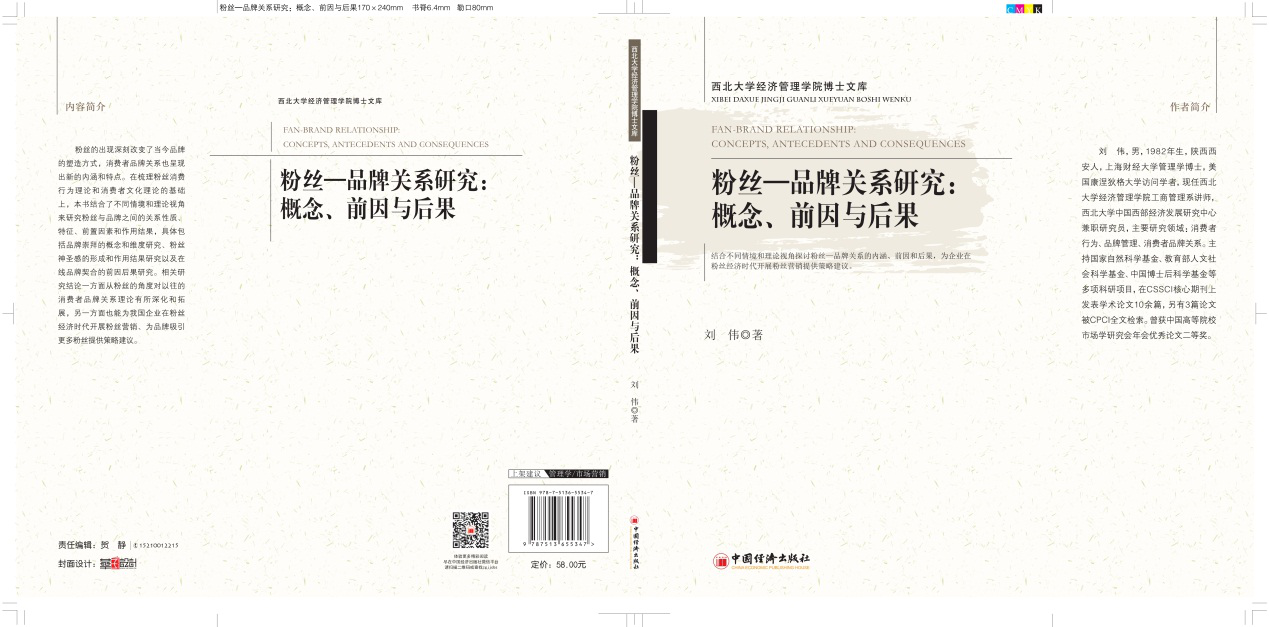 近日,由beat365官网工商管理系教师刘伟博士独立撰写的专著《粉丝—品牌关系研究:概念、前因与后果》由中国经济出版社正式出版,该书共7章内容,约14.7万字。