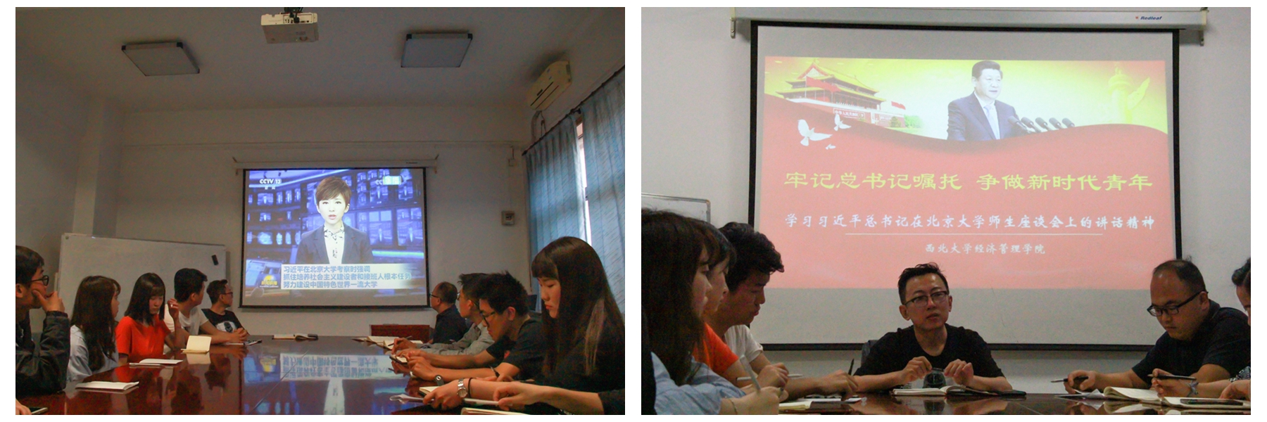 beat365英国官方网站第一时间让习近平总书记的讲话精神进课堂进支部,迅速掀起学习贯彻落实习近平在北京大学师生座谈会上的重要讲话的热潮。经管青年一致表示,学习领会总书记讲话精神,具有强烈的民族自豪感和文化自信力,将把个人理想追求融入国家和民族的事业中,努力践行总书记“勤学、修德、明辨、笃实、爱国、励志、求真、力行”的青年要求,做新时代的弄潮儿。