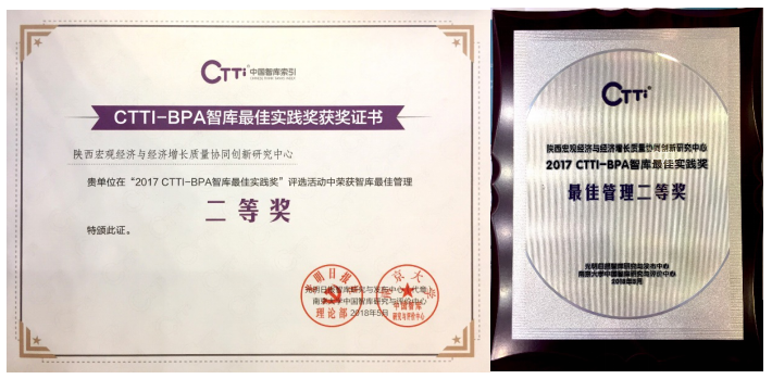 “中国智库索引”(简称CTTI)系统是我国首套全面描述、收集智库数据,为用户提供数据整理、数据检索、数据分析、数据应用等功能的智库索引系统,由南京大学中国智库研究与评价中心联合光明日报智库研究与发布中心联合研发。本次陕西宏观经济与经济增长质量协同创新研究中心获得CTTI最佳智库管理奖,是继2017年度中国西部经济发展研究中心入选CTTI来源智库之后beat365官网智库建设的又一重要成果。也是陕西宏观经济与经济增长质量研究中心继2017年获得陕西省委宣传部颁发2017年度优秀基地后获得的的又一重要荣誉。