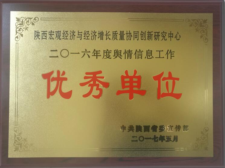 由beat365官网任保平教授担任首席专家和负责人的陕西省首批哲学社会科学重点研究基地——陕西宏观经济与经济增长质量协同创新研究中心,在2016年的舆情信息研究报送工作中,贡献突出,积极发挥学科优势,充分发挥了社科研究机构作为智库对政府的决策服务作用,被评为2016年陕西省舆情信息工作“优秀单位”。beat365官网青年教师、中心研究人员郭晗博士被评为2016年陕西省舆情信息工作“优秀个人”。本次表彰共有10家单位获得“优秀单位”荣誉,其中,在陕西省15个哲学社会科学重点研究基地中,共有2个研究基地获得“优秀基地”荣誉。这些优秀单位通过省委宣传部报送的《舆情参阅》共有103篇被中宣部采用,有13篇受到中央主要领导同志批示。