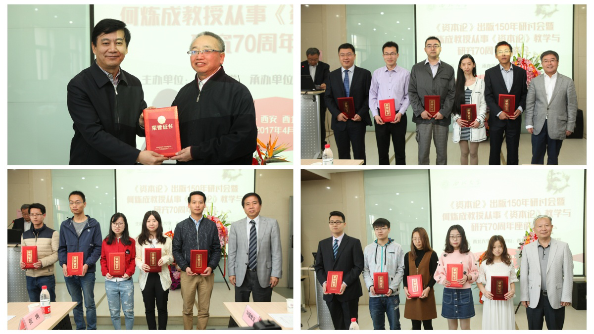 4月22日,“马克思《资本论》出版150年研讨会暨何炼成教授从事《资本论》教学与研究70周年座谈会”在我校长安校区召开。何炼成先生、校党委书记王亚杰、校长郭立宏,校党委常委、副校长王正斌出席会议。会议由校党委副书记、副校长贾明德主持。来自国内马克思主义政治经济学领域相关专家学者、陕西省经济学会、我校经管学院历届校友代表、学院班子成员及师生共计100余人参加了座谈会。