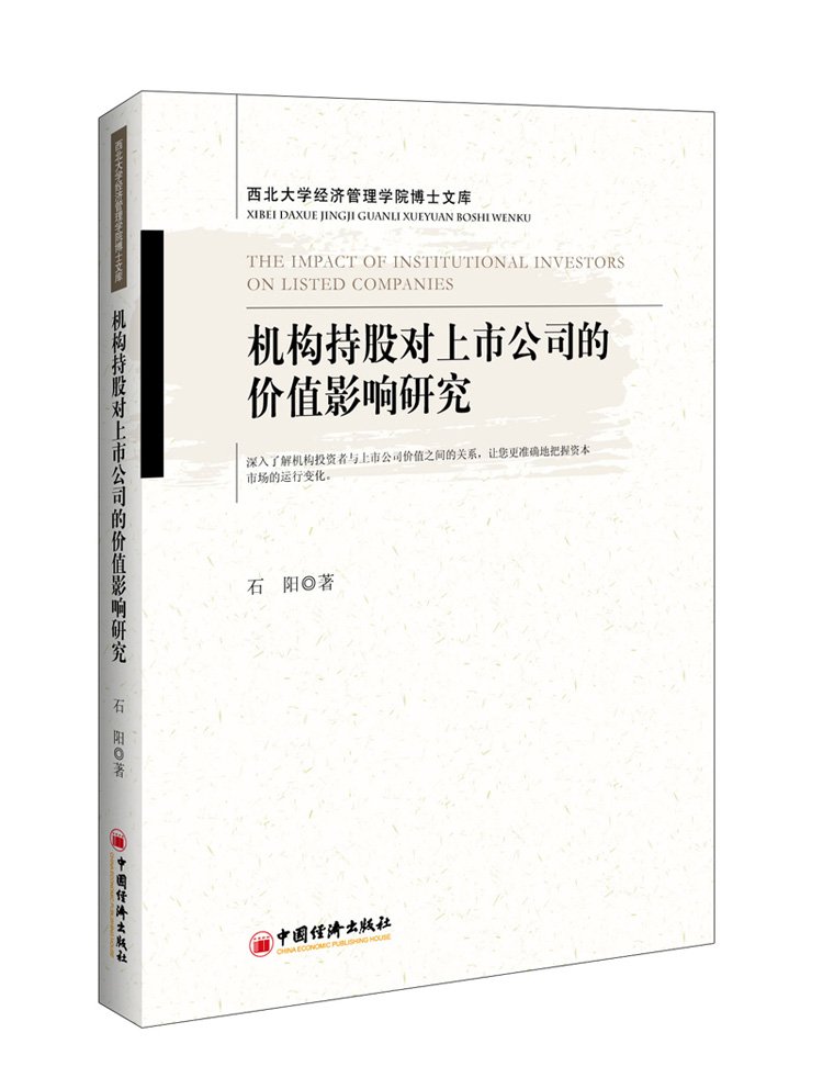 近日,beat365官网金融系青年教师石阳博士的专著《机构持股对上市公司的价值影响研究》由中国经济出版社出版,该书共7章内容,约15万字。