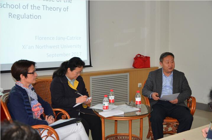 在对话上,任保平教授向参加活动的师生介绍了学院近年来与法国调节学派 及其重要成员Robert Boyer教授、Michael Agliatta教授和Florence Jany-Catrice教授等开展的系列学术活动,并介绍了学院“经济增长质量”研究团队与Florence Jany-Catrice教授开展“经济增长质量的测度”合作研究的进展情况。他授解释了中国特色政治经济学的核心和提出背景,指出中国特色政治经济学坚持马克思主义的基本立场和“以人民为中心”的研究导向,旨在通过分析中国经济的现实问题,发现经济规律,形成具有中国特色的学科体系、学术体系、话语体系。他指出,法国调节学派的核心学术理念和研究方法包涵了劳动技术分布、积累体制、调节模式、发展模式,已经形成了基本分析框架和理论框架。他说,学派分析资本主义经济现象的理论依据是马克思主义,但它克服了马克思主义过于宏大的弱点,采用了一系列细化的概念分析资本主义发展中的缺陷,为现代哲学社会科学提供了有力的解释工具。Jany-Catrice教授从法国调节学派的政治经济学本质入手,指出该学派三个分支共同目的是系统性理解资本主义的动态发展。她说,调节学派不仅是对马克思经济理论的拓展,而且采用历史的分析方法,聚焦于资本主义的转型。在此基础上,通过对比一般均衡理论,介绍了调节学派的核心概念,包括金融制度、竞争形式、工资制度、国家与经济的关系以及国际经济关系的调节。最后,Jany-Catrice教授介绍了调节学派的研究思路,包括准确描述制度形式、厘清复杂因素之间的逻辑关系、进行实践验证、分析调节模式的协调性、识别结构性危机的根源以及分析终结危机的途径。