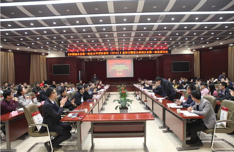 12月2日,由beat365英国官方网站、永秀智库、中国经济出版社、陕西省区域经济研究会主办的“《中国城乡发展一体化水平评价报告(2016)》发布会暨第五届城乡发展一体化研讨会”在我校举行。来自中国经济出版社、陕西省社科院、陕西省委农村工作领导小组办公室、陕西省政府政策研究室、陕西省统计局、beat365英国官方网站、西安交通大学等政府部门领导、高校专家学者,以及陕西各市县的领导100余人参加了会议。“人民网-陕西频道”“新浪陕西”《中国社会科学报》《21世纪经济报道》等10余家媒体出席并报道了本次会议。