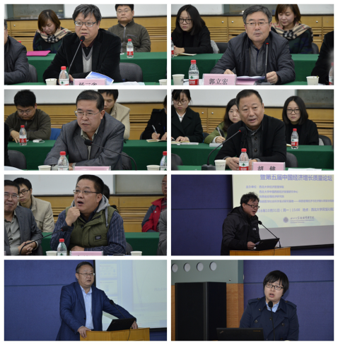 郭立宏在讲话中充分肯定了以任保平教授为带头人的科研团队长期坚持“经济增长质量”研究所取得的成果,并希望该团队继续整合相关学科和单位的学术资源,着力研究新常态下中国经济增长质量的相关问题,用更多高层次的成果为学校“双一流”建设做出贡献。陕西省政府研究室主任杨三省在讲话中对《中国经济增长质量发展报告2016》发布表示祝贺,并希望经济增长质量研究团队在科学研究的基础上,积极为陕西地方经济社会的发展建言献策,力争成为国家“一带一路”战略的优秀智库。在专家发言阶段,陕西省政府研究室主任杨三省、陕西省社科院院长任宗哲、西安财经学院院长胡健、西安市社科院科研处处长朱利民、西安交通大学经济金融学院副院长魏玮等多位专家学者紧紧围绕中国经济新常态下的增长质量问题进行了研讨,内容涉及到增长质量指标分类、主要内容、分配工具和报告撰写方法等,对经济增长质量研究团队今后持续开展工作提出了针对性的建议。