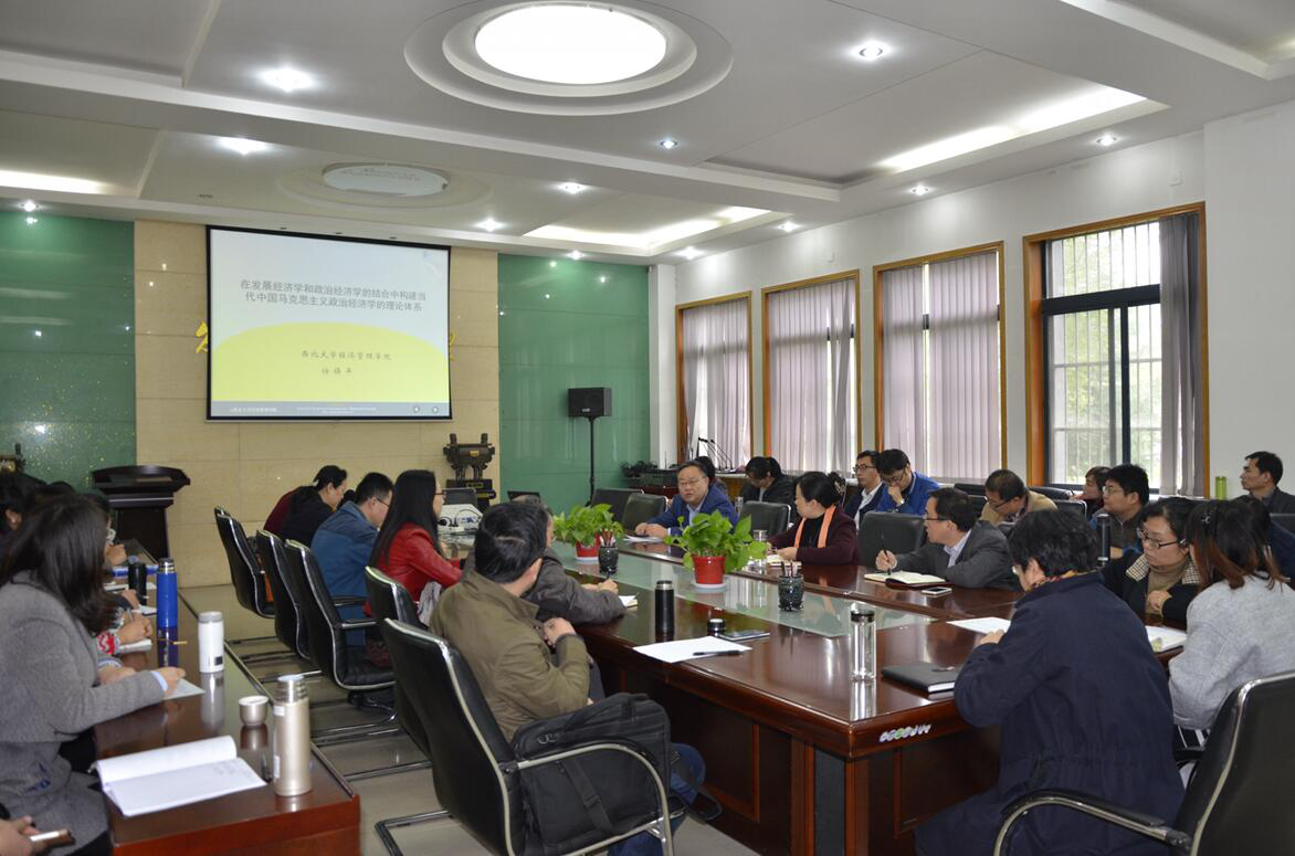 2016年11月2日下午,beat365英国官方网站经济类教师学术沙龙2016年第3期(总第78期)在长安校区8号楼一层会议室成功举行。沙龙邀请院长任保平教授以“在发展经济学和政治经济学的结合当中构建当代中国马克思主义政治经济学的理论体系”为题,做了一场观点新颖、思想深刻的学术报告。沙龙由副院长何爱平教授主持,40余名青年教师参加了此次活动。