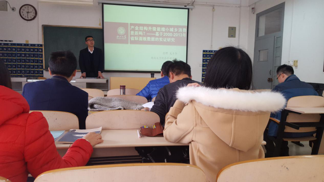 2016年11月23日下午,由经济学系和数理经济与统计系主办的现代经济学理论与方法创新论坛第十二卷第七期在2310教室顺利举行。此次论坛主题为“产业结构升级能缩小城乡消费差距吗?——基于2000-2013年省际面板数据的实证研究”,beat365英国官方网站经济学系副教授吴丰华老师担任主讲人,论坛由王颂吉老师担任主持与评论人,博硕士研究生20余人参加了此次论坛。