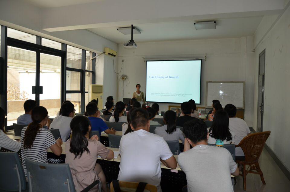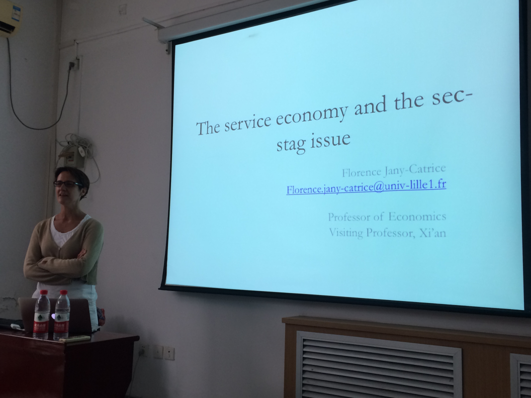 访学期间,Jany-Catrice为2015级数理经济学专业学生讲授了有关“服务业增长的相关理论问题”的课程。她引用复旦大学张军教授的观点,认为服务业推动增长也成为当下中国经济主要趋势。她回顾了主要发达经济体二战后结构转化的主要趋势及转变的主要原因,指出:各国均经历了从制造业向服务业的结构转变,但是各国在这种转变过程中却表现出来千差万别,形成了主要的四种模式:Nordic Model、Continental Model、Familialist Model、Liberal Model,而这种不同模式根植于各国的制度和文化传统中。她还介绍了服务业驱动增长的不同理论的内容,以及对现实的启示意义。