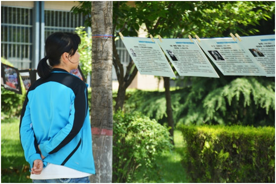学生认真观看宣传展板