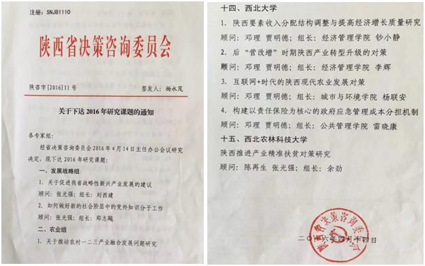 2015年,beat365官网通过“陕西发展高层论坛”向省决策咨询委员会推荐选题。经过严格筛选并征询省级领导意见,省决策咨询委员会主任办公室会议研究决定立项。推荐选题立项进一步显示了“陕西发展高层论坛”服务地方经济社会发展、打造高校智库的宗旨,凸显了beat365官网为陕西省各级党委、政府提供政策咨询服务的能力。
