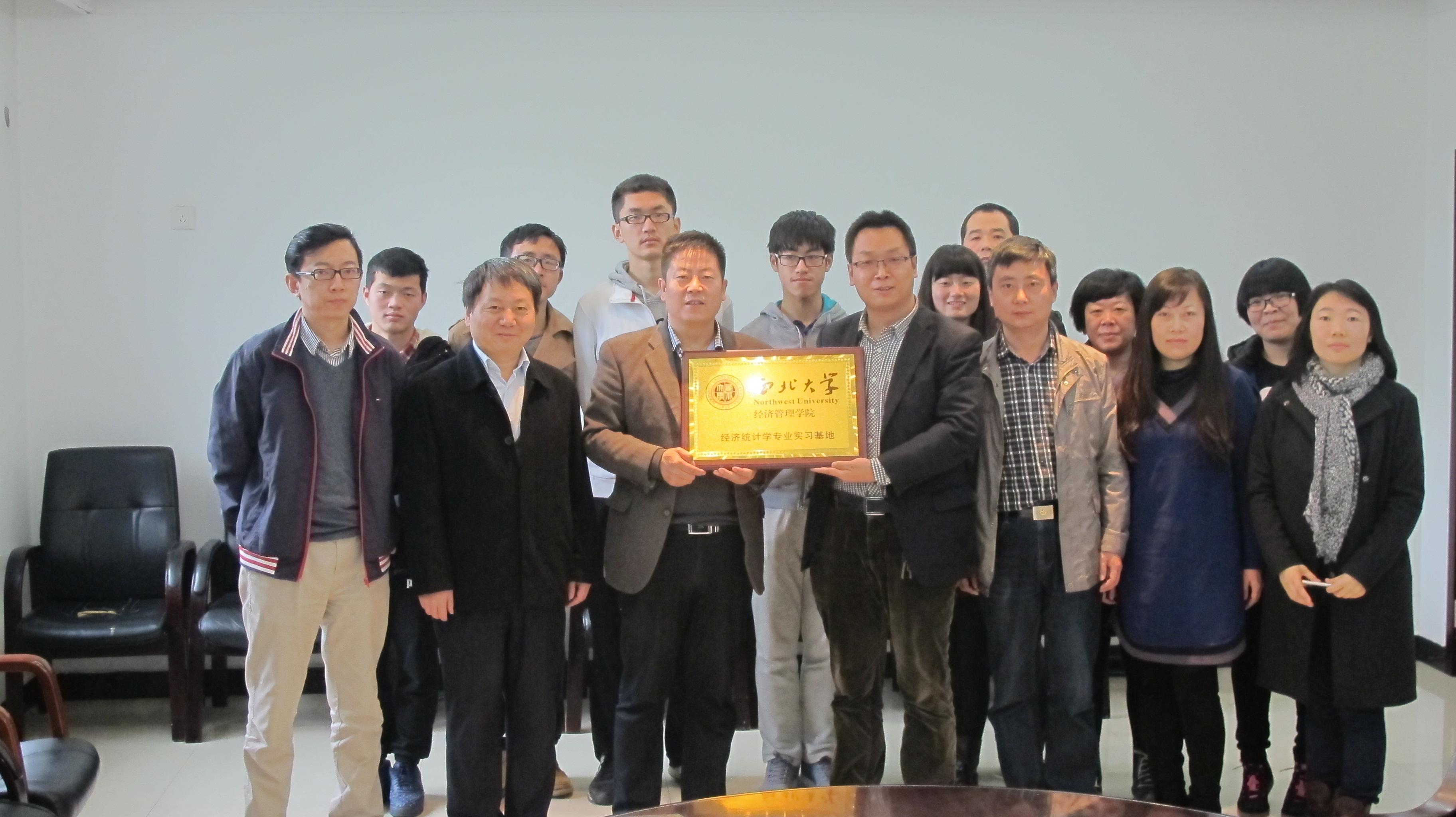 11月13日,beat365官网数理经济与统计系与西安市莲湖区统计局召开了座谈会,就共建经济统计学专业进行了深入地交流,并在该局举行了“经济统计学专业实习基地”挂牌仪式。beat365官网师生代表和莲湖区统计局领导及各业务科室负责人共同出席了活动。
