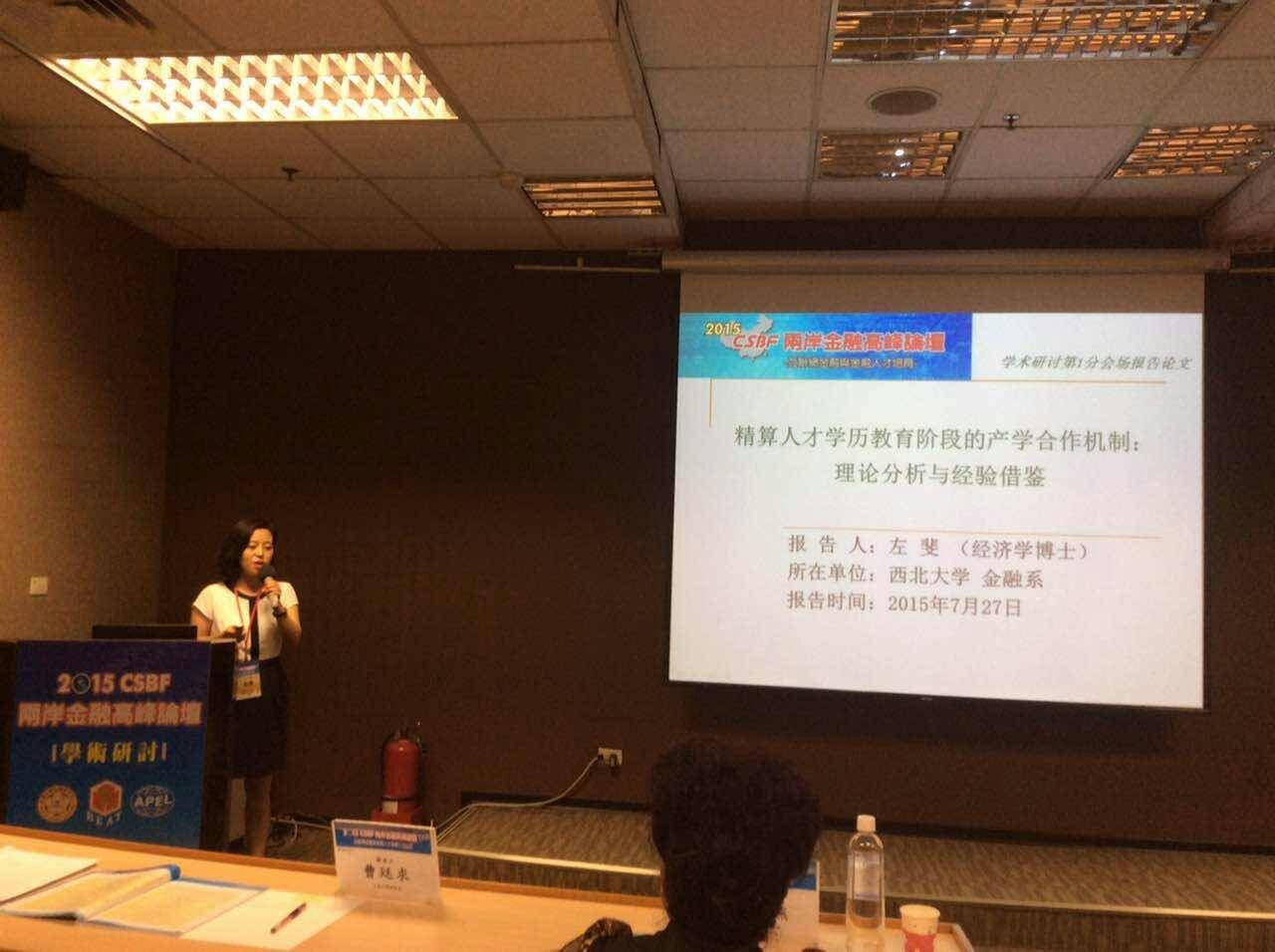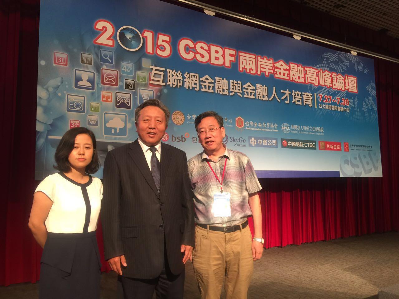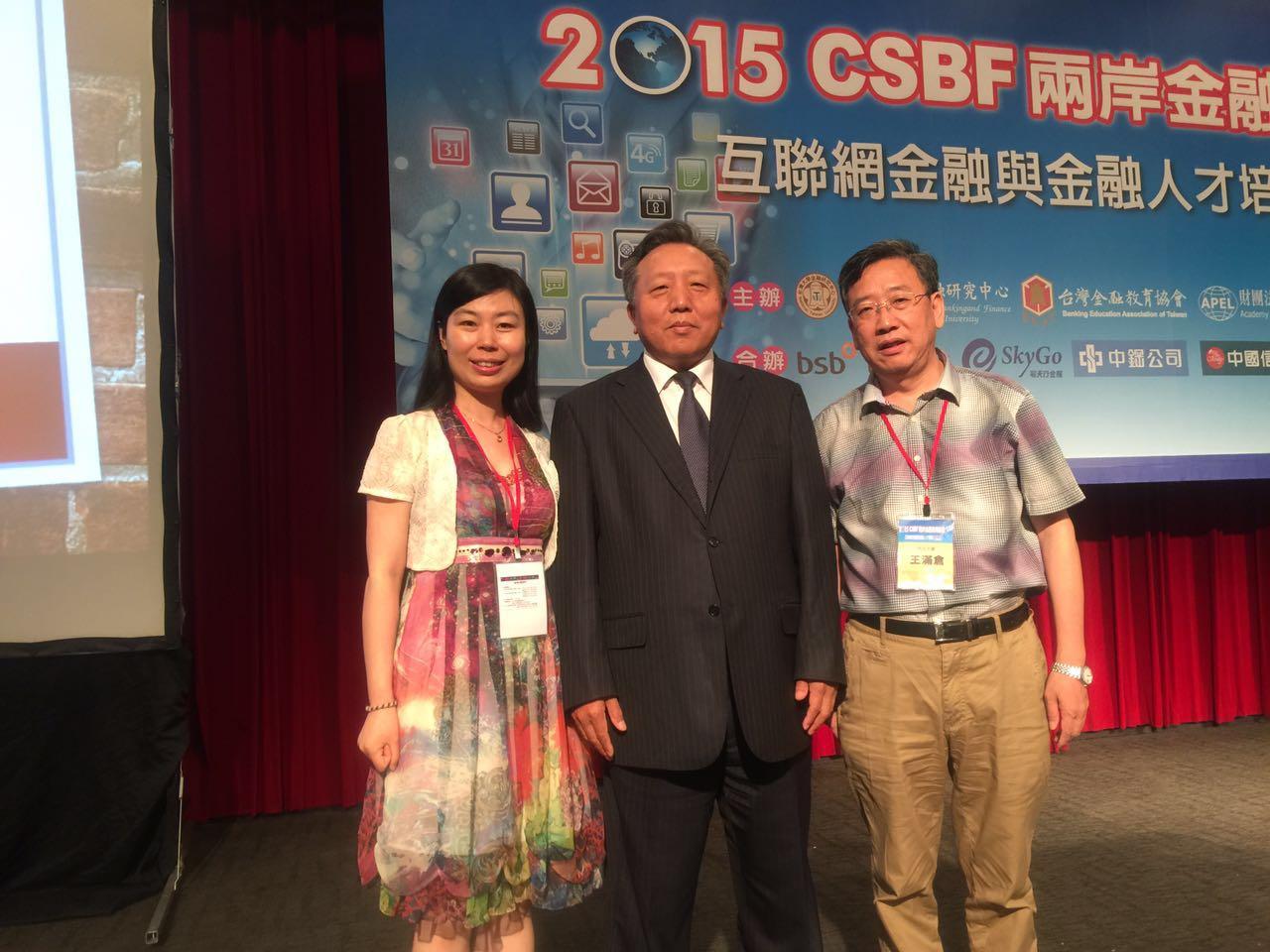 2015年7月27日至7月30日,由台湾大学金融研究中心、财经立法促进院及台湾金融教育协会共同主办,台湾金融理事会协办的2015 CSBF两岸金融高峰论坛于台北召开。beat365官网金融系王满仓教授、韩锦绵副教授和左斐博士三位教师提交的论文经过评审筛选获邀赴台参加,并发表学术演讲,王满仓教授还被邀请作为学术论文分会场主持人出席大会。