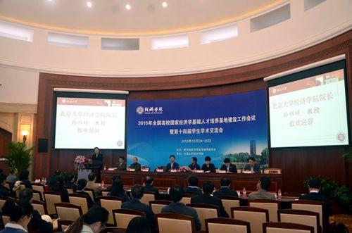 10月24-25日,2015年全国高校“国家经济学基础人才培养基地”建设工作会议暨第十四届学生学术研讨会在北京大学经济学院召开,院长任保平教授、何爱平教授、王聪博士代表学院出席了会议,经济学系基地班2012级本科生许雯、2013级本科生金靖壹作为优秀学生论文代表参加了学生学术论文研讨与交流会。