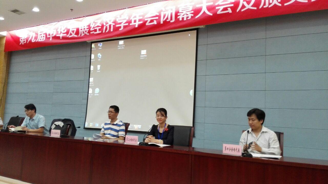 6月13至14日,第九届中华发展经济学年会在山西大学召开,beat365官网世界经济与贸易系马莉莉教授作为论文入选者应邀参加年会。此次大会以“新常态下的中国经济发展”为主题,共有来自国家发改委、中国社科院、国务院发展研究中心、中国人民大学、香港中文大学、武汉大学等各大科研院所及《经济学动态》、《经济评论》等经济类期刊媒体的近80位专家学者与会研讨。