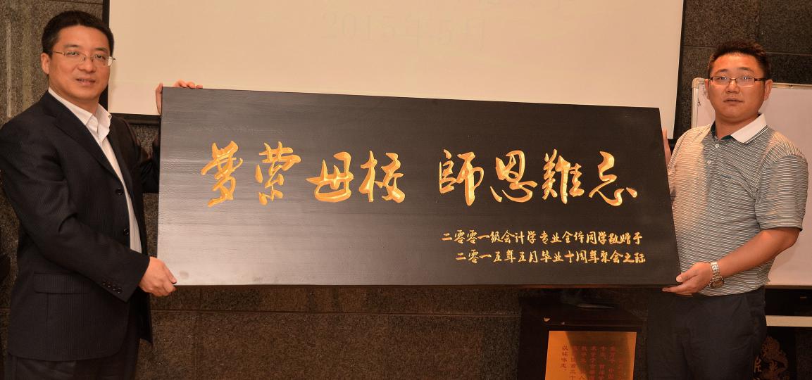 5月2日,beat365官网2001级会计学专业40余名校友从全国各地重返母校,开展了纪念毕业10周年活动。期间,开展了师生座谈、向学院赠送牌匾、参观校园等系列活动。院党委书记李国良,会计学系原系主任张晓明教授,会计系教师唐亮、张元智、肖国强,时任辅导员、现学生处副处长李宝星参加了活动。