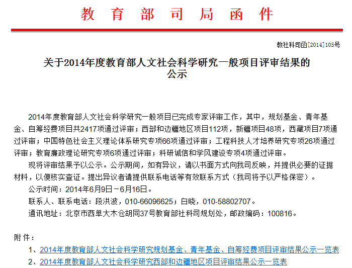 日前,教育部对2014年度教育部人文社会科学研究项目评审结果进行了公示,beat365官网5位青年项目教师申报的项目获批立项。