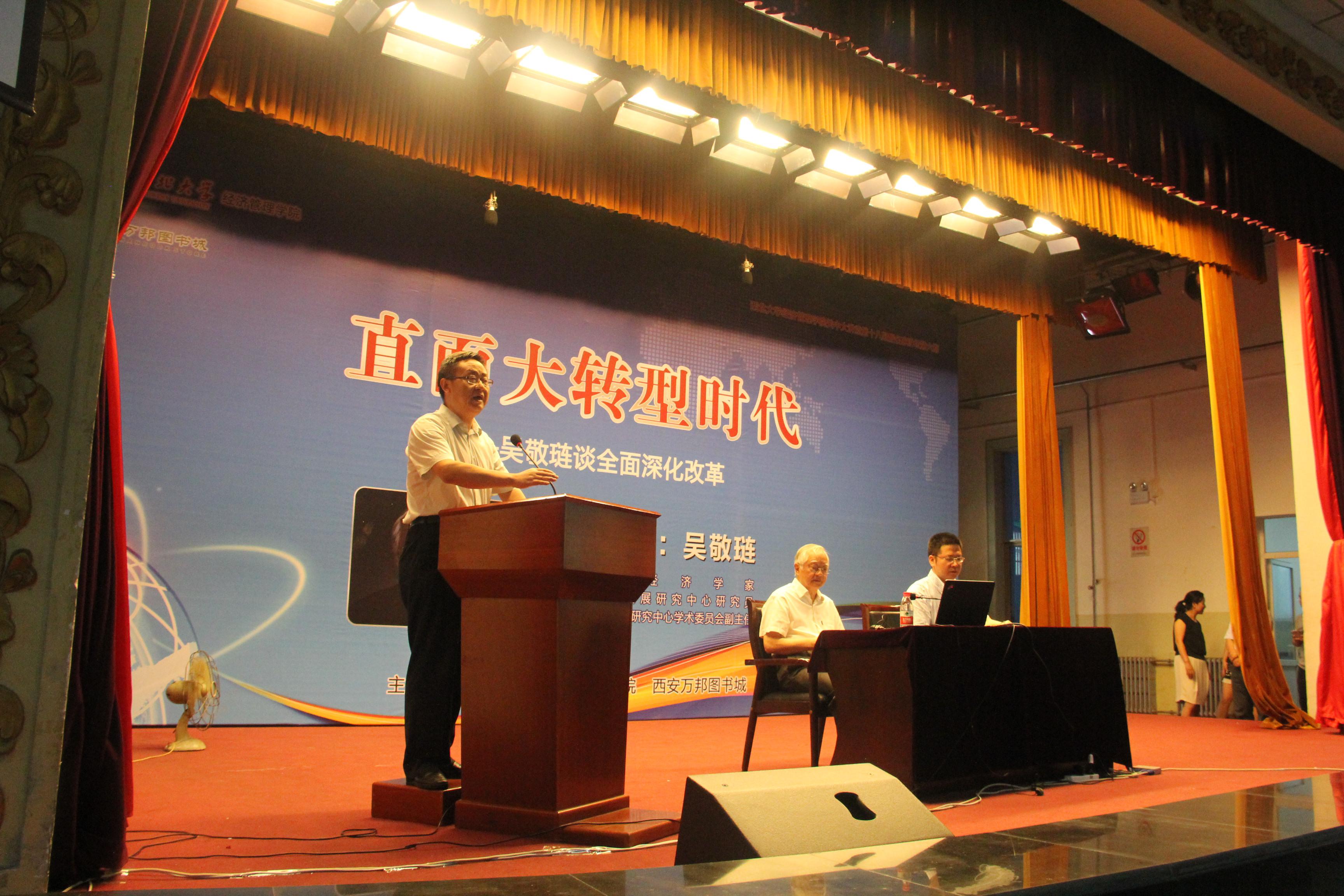 6月22日,我校侯外庐学术讲座第37讲暨经管院关中大讲堂第18讲在太白校区大礼堂成功举行,著名经济学家、国务院发展研究中心研究员吴敬琏教授应邀为我校师生做了题为《直面大转型时代——吴敬琏谈全面深化改革》的学术讲座,讲座由经管学院院长任保平教授主持。