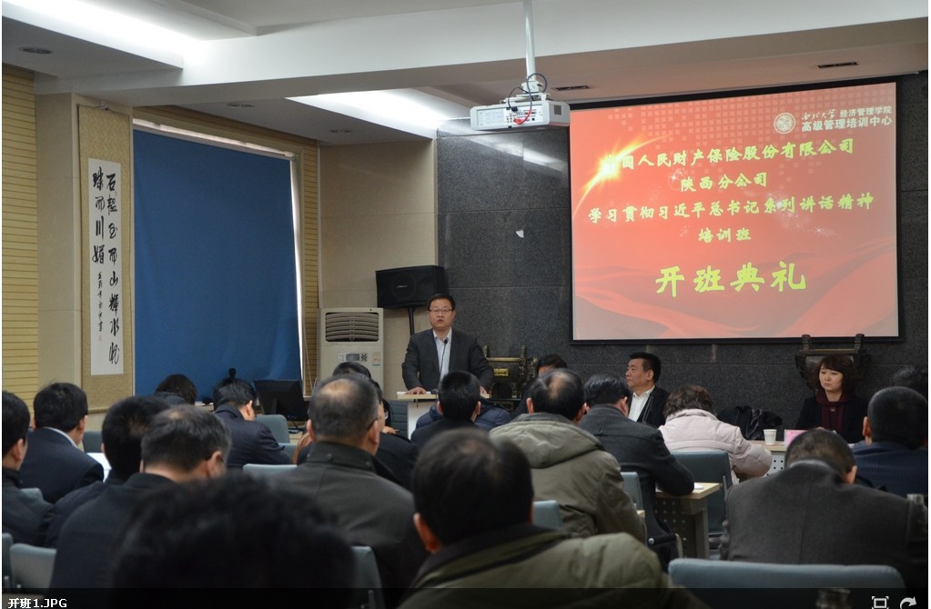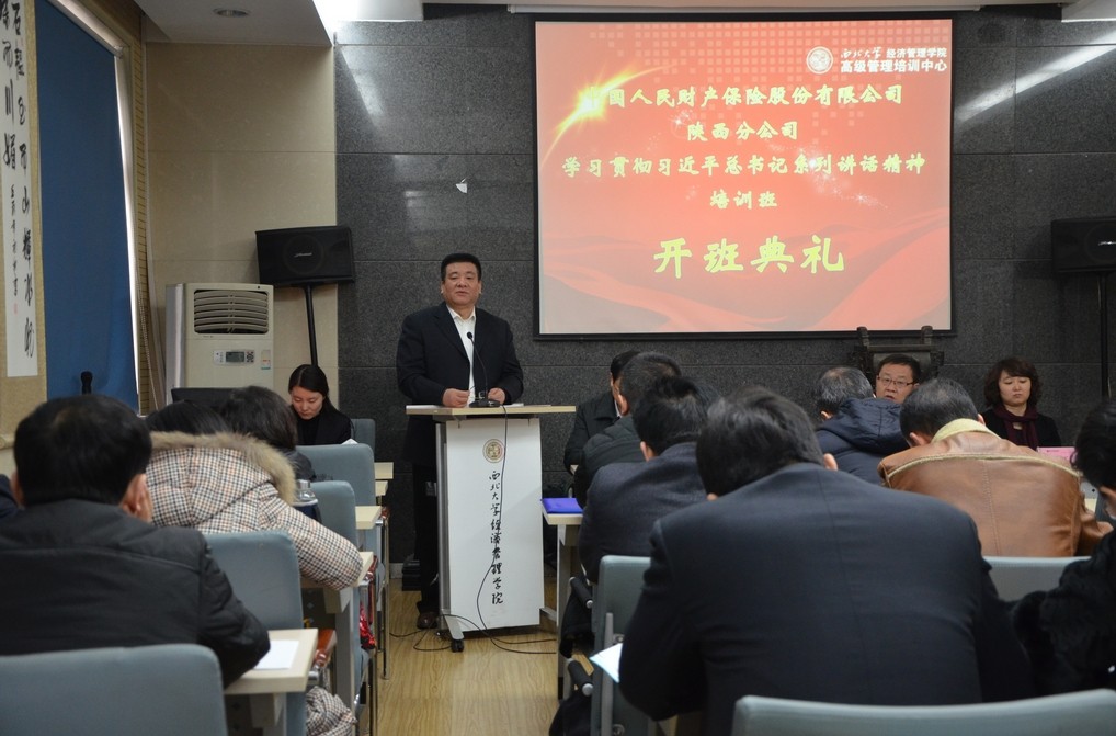 2月9—13日,受中国人民财产保险股份有限公司陕西省分公司的委托,beat365官网成功举办了为该公司中高层管理人员开办的“学习贯彻习近平总书记系列讲话精神”专题培训班。