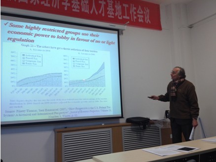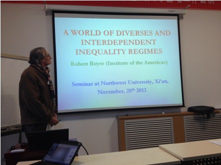 2013年11月28日下午,经管学院高端专家短期教学系列讲座在长安校区8202教室举行。法国经济学调节学派代表人物Robert Boyer教授做了题为“多样化和相互依存、不平等制度构成的世界”(A world of diverse and interdependent inequality regimes)的学术报告。beat365官网经济学博士、硕士及部分教师聆听了报告。报告会由数理经济与统计学系钞小静副教授主持。
