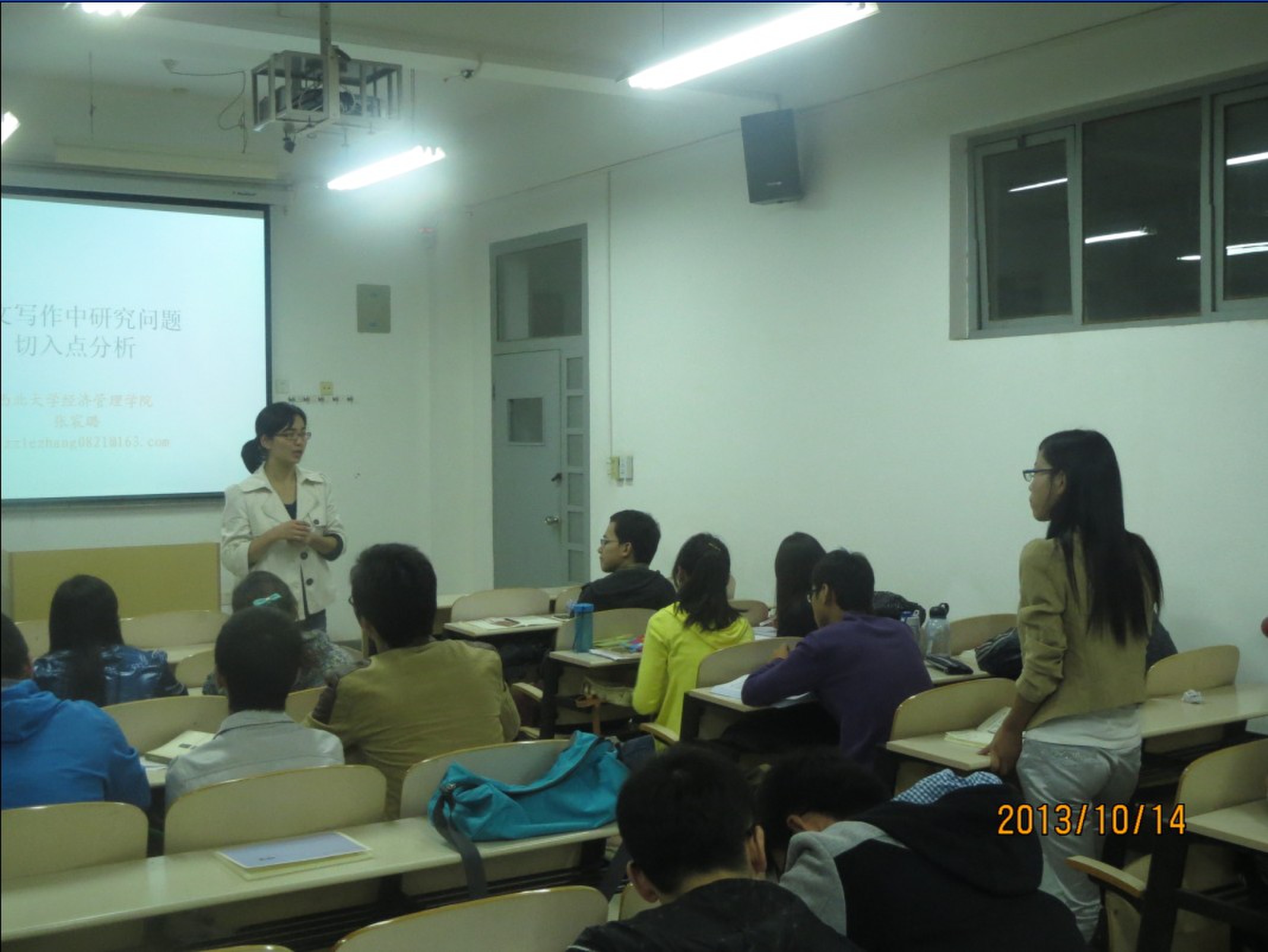10月14日晚7点,beat365官网“经曰管云”系列学术论坛第二十讲暨第七届研究生学术活动月学术讲座第四场开讲在长安校区1210教室举行,此次报告诚挚邀请到了工商管理系讲师张宸璐老师给同学们做了了题为《论文写作中研究问题切入点分析》的专题报告。