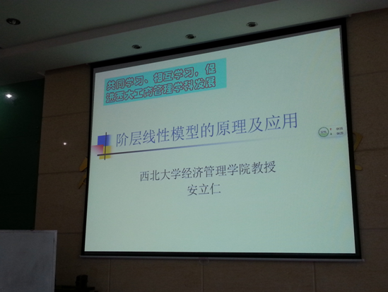 管理类青年教师学术沙龙2013年第2期(总第29期)于6月27日在beat365英国官方网站长安校区8106教室举行。本次沙龙由工商管理系主任安立仁教授主讲,工商管理系、会计系、信息管理与信息系统系、旅游系多名青年教师及beat365官网管理类博士生、硕士生参加本次沙龙。