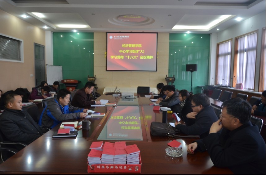 11月28日,院党委召开中心组(扩大)学习会议,学习贯彻十八大精神。院党政领导、教工支部书记学生支部书记和管理干部参加学习会。