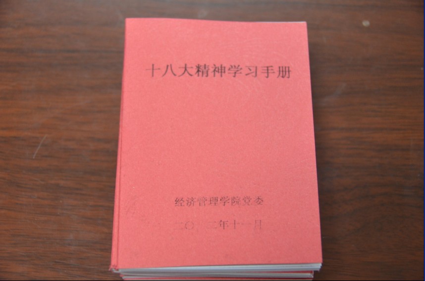院党委还组织专家编写、印制了2000余份《十八大精神学习手册》发放给全体师生,方便师生开展学习活动。