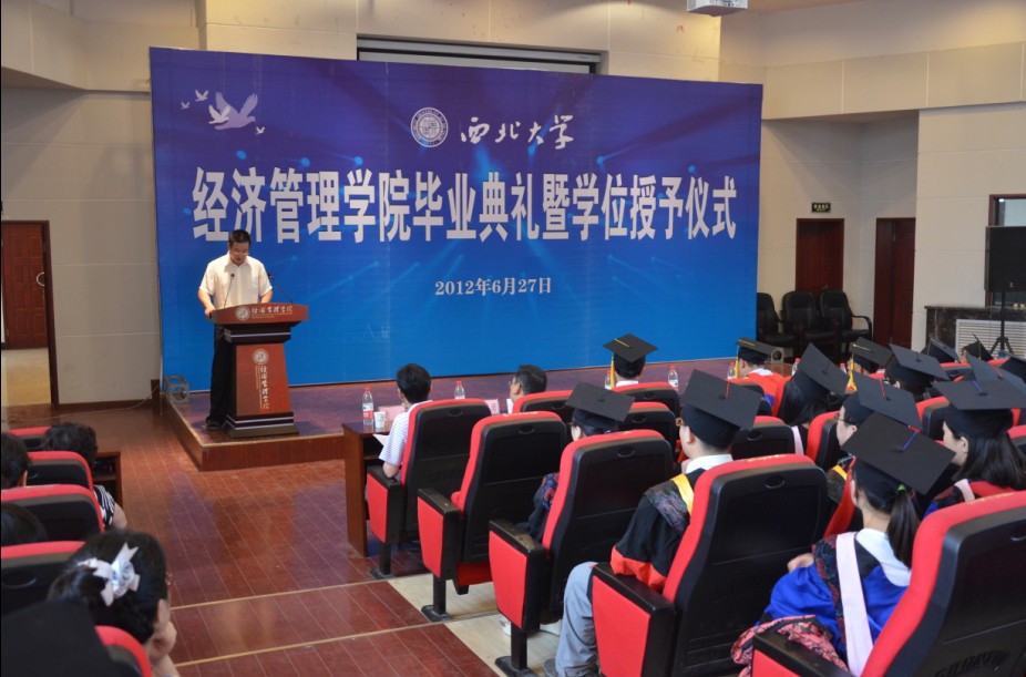 6月27日上午,beat365官网隆重举行了2012届毕业生学位授予仪式暨毕业典礼。学院党政领导班子成员、各系系主任、教师代表、部分学生家长代表和550余名2012届毕业生参加了活动。在活动中,院党委书记王宝宣读了2012年毕业生人数及学位授予人数, 院学术委员会主席白永秀教授、院长任保平教授、副院长惠宁教授分别为今年毕业的博士毕业生、硕士毕业生和本科毕业生授予了学位。