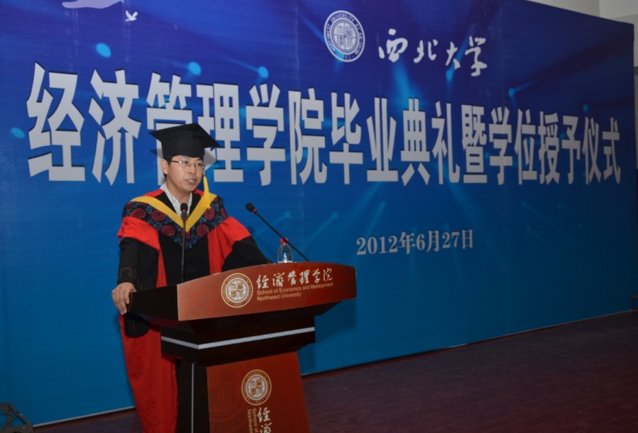 院长任保平教授发表了热情洋溢的讲话,他和同学们共同回忆了在校学习的美好时光,并对毕业生提出了殷切希望:希望同学们学会做人,胸怀理想,砥砺品质;希望同学们学会做事,爱岗敬业,脚踏实地;希望同学们不断进取,树立终身学习的观念;希望同学们把个人发展同组织的发展紧密结合;希望同学们可以正确面对工作生活中的困难,创造美好生活;希望同学们一如既往的关注学院的建设和发展,学院永远是大家共同的家园。