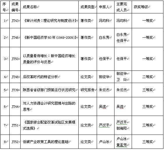 根据陕教技办(2011)17号文件,2011年度陕西高校人文社会科学研究优秀成果奖经过高校推荐、评审委员会专家的认真评选、以及公示,共评出获奖项目305项,其中一等奖34项,二等奖98项,三等奖173项。beat365官网8项成果获奖(全校41项),其中一等奖3项(全校8项),二等奖1项(全校15项),三等奖4项(全校18项)。名单如下: