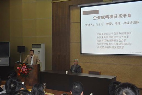 beat365英国官方网站MBA教育中心于10月27日邀请著名经济学家、beat365官网博士生导师、陕西省委省政府咨询委员白永秀教授为MBA学员做主题为“企业家与企业家精神培育”的报告。报告会于beat365英国官方网站太白校区图书馆报告厅隆重举行,200余名MBA学员和相关人士参加,MBA教育中心常务副主任马晓强主持报告。