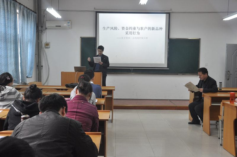 由学院经济学系主办的“现代经济学理论与方法创新论坛”第八卷第四期10月26日下午2点在学院8213教室举行。学院财税系主任马小勇副教授主讲,题目为“生产风险、资金约束与农户的新品种采用行为——基于陕西三县的的经验分析”。