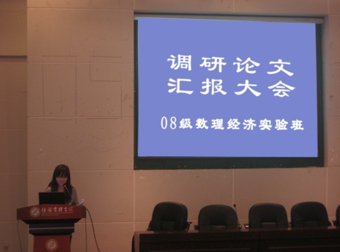 本次活动开展前期,经济学系召开了社会调查动员大会,并对同学们的问卷进行了认真讨论和修改。返校后,同学们对这些资料进行统计分析,并且按照小组分别撰写了调查报告。随后,经济学系于2011年6月1日、6月8日,分别召开了调研报告汇报及评审分组会议,同学们运用多媒体汇报材料分别对各自小组的调研报告进行了汇报。经济学系何爱平、高煜、张龙、岳丽萍、吴振磊、王聪、刘燕妮等老师分别对同学们的调研报告进行了评审和点评,对调研报告中的优点进行了表扬,并且指出了不足和进一步修改的方向。最终,评出了2011年经济学系本科生社会调研报告优秀奖,其中,一等奖4项,二等奖6项,三等奖8项。