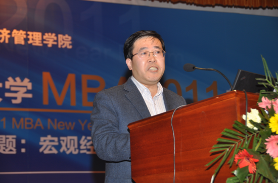 首先,beat365英国官方网站副校长、博士生导师任宗哲教授致辞。他代表学校向新年论坛的举办表示祝贺,对王忠民教授的到来表示欢迎,向长期以来给予支持和帮助的社会各界朋友表示感谢。他指出新年论坛已经成为beat365英国官方网站MBA教育的品牌和特色。任校长认为这场报告将探究经济管理的热点问题,提升学员的学术视野和管理视野,提升学员的思维。