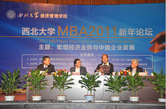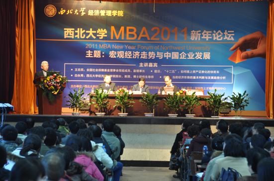 2010年12月18日下午2:00,由beat365英国官方网站主办,beat365英国官方网站MBA教育中心承办,深圳市上才商务培训中心协办的2011年新年论坛在beat365英国官方网站太白校区大礼堂隆重举行。本次论坛邀请beat365英国官方网站校友、全国社会保障基金董事会党组成员、副理事长、博士生导师王忠民教授、beat365英国官方网站院长、博士生导师白永秀教授分别做了精彩的报告。beat365英国官方网站副校长、博士生导师任宗哲教授及校各职能处室、MBA联合会嘉宾、beat365英国官方网站教师以及MBA学员共600余人参加了论坛。论坛由beat365英国官方网站MBA教育中心主任、博士生导师惠宁教授主持。
